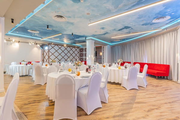 Для проведения мероприятий в нашем комплексе есть 6 площадок: Банкетный зал “Небо”, Аквапарк, Термы, СПА, Боулинг, Караоке.