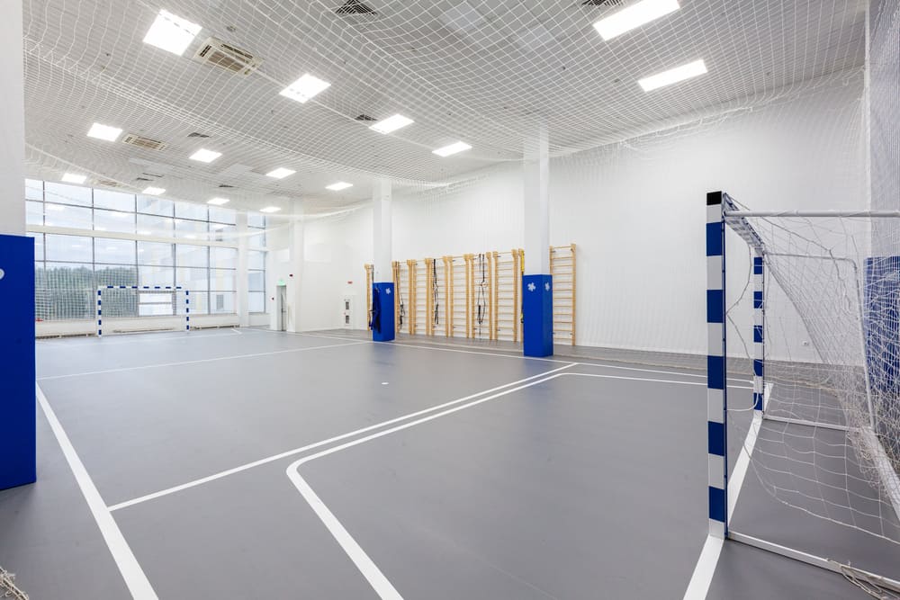 Современный спортивный зал для игры в мини футбол и волейбол, площадь которого позволяет с комфортом разместить до 50 человек. Размер игрового поля составляет 212 кв.м (9*18 кв.м), зал оборудован сеткой, есть взрослые и детские ворота, а также весь необходимый инвентарь: мячи, фишки, конусы.