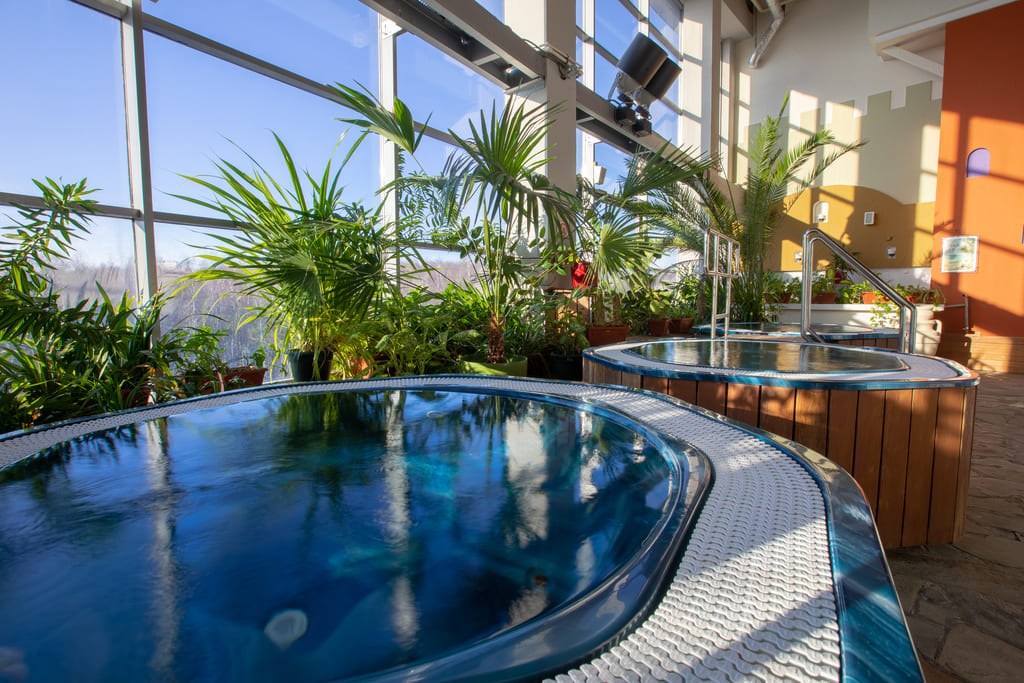 Гостям СПА-центра доступны: 6 гидромассажных бассейнов, соляная пещера, русская баня из кедра, инфракрасные сауны, большой хаммам, римская баня, бассейн с лазурной водой, аромасауна, греческие бани, финская и греческая сауна, душ с хромотерапией, дорожка Кнайпа и более 70 видов СПА-услуг.