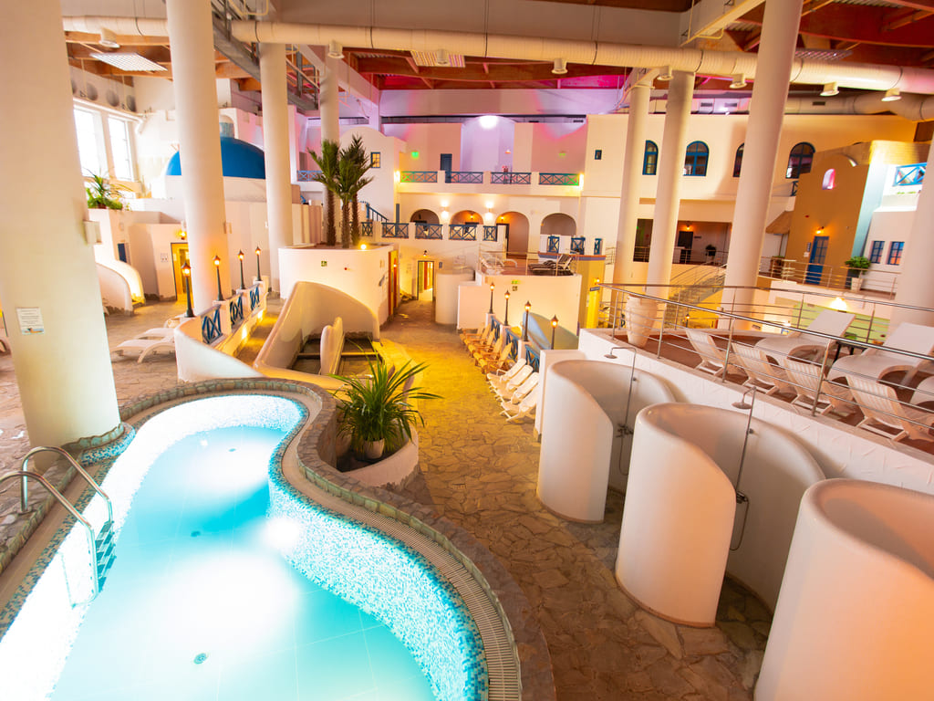Открывая двери нашего Spa-курорта, Вы попадаете на греческий остров Санторини. Белоснежные многоярусные террасы, магические ароматы, роскошная атмосфера средиземноморья, а также разнообразие бань и саун подарит Вам незабываемые минуты покоя, умиротворения, и вдохновения.