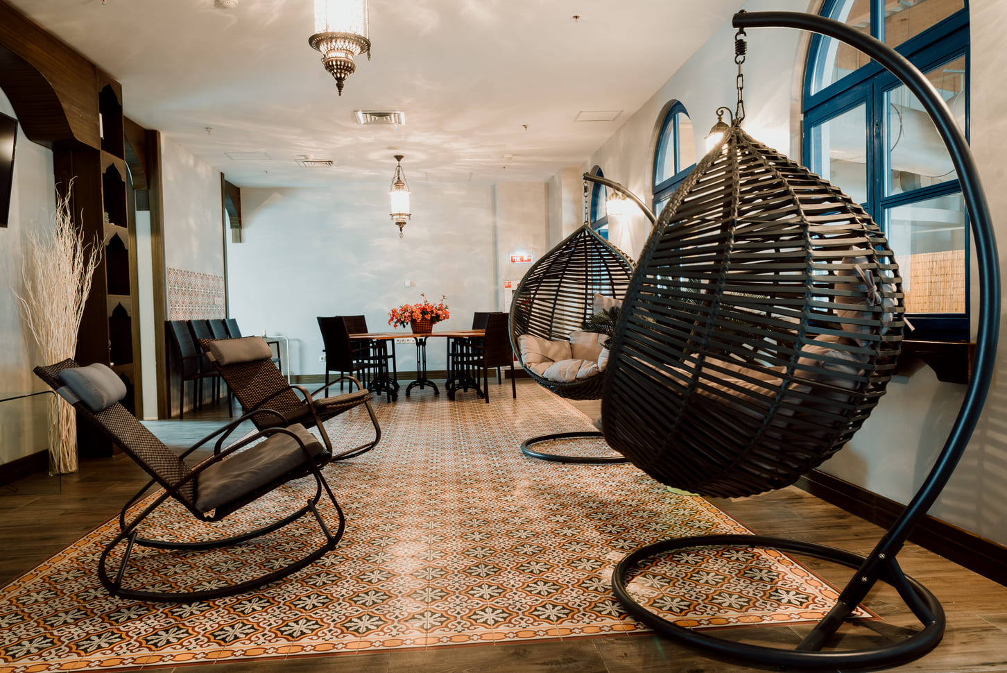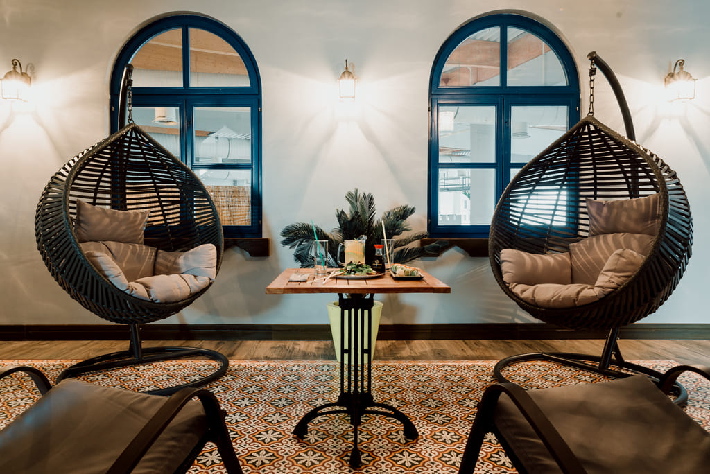 качелями-гамаками, а также lounge-зона с шезлонгами. Гости могут пользоваться всеми