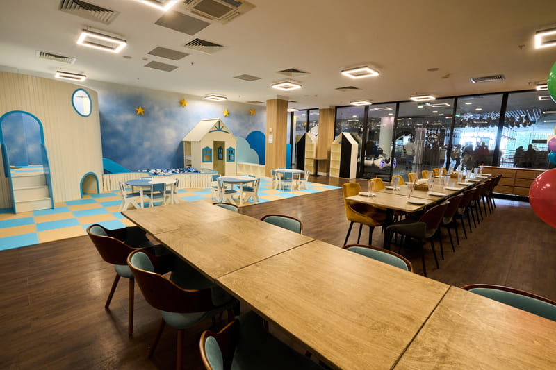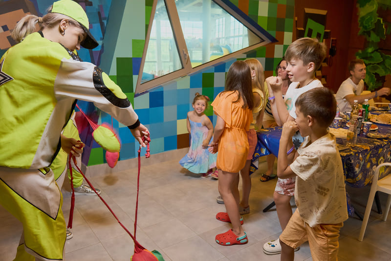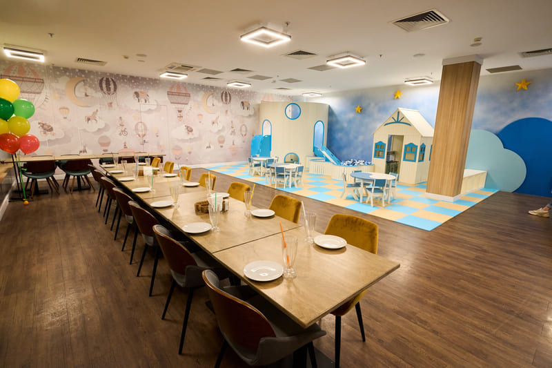 В банкетной зоне есть игровая зона, где можно провести анимацию, устроить бумажную вечеринку, крио-шоу или разбить пиньяту!