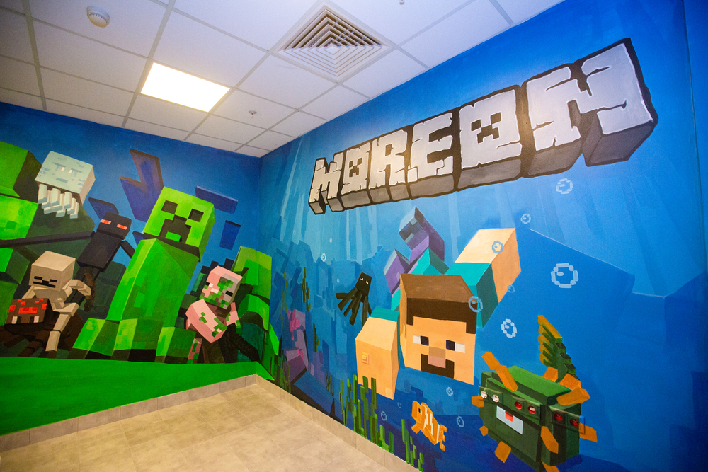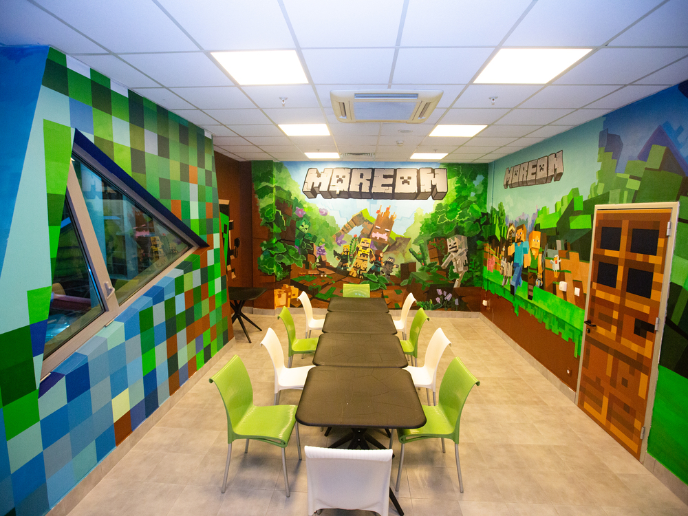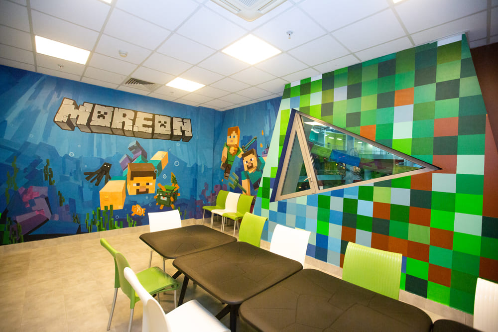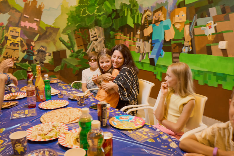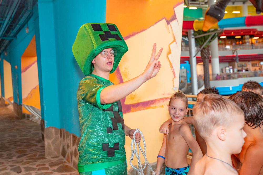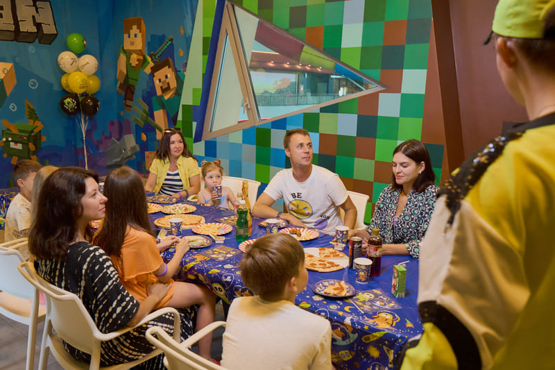 Наши художники создали компьютерный мир, в виде банкетной комнаты, в аквапарке по мотивам игры Майнкрафт, уверены, что ни один ребенок не останется равнодушным!