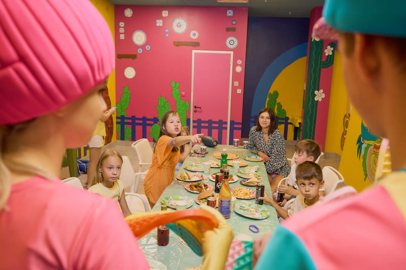 Закажите улётный праздник в аквапарке с банкетом! Воспользуйтесь Готовыми предложениями, чтобы выбрать подходящий вариант. Или забронируйте одну из трёх ярких банкетных комнат, где ваша компания сможет весело отметить праздник. Банкетные комнаты расположены прямо на территории аквапарка.